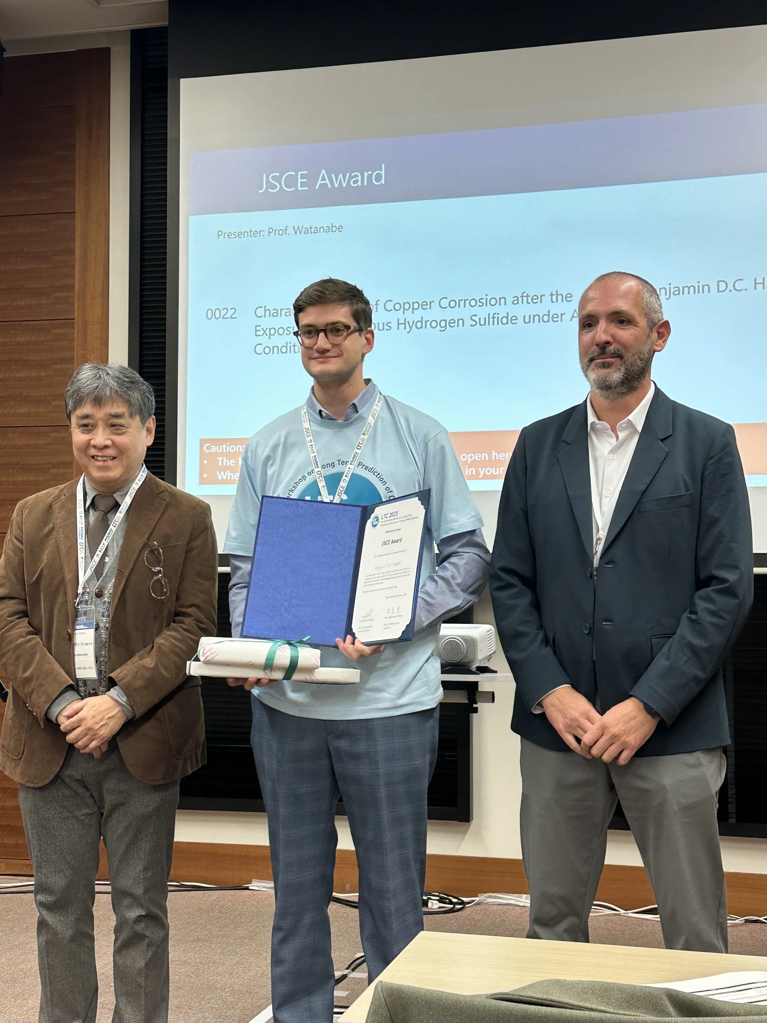 Ben was honoured to receive the Japan Society of Corrosion Engineering Young Researcher Award for his presentation "Characterization of Copper Corrosion after the Exposure to Gaseous Hydrogen Sulfide under Anoxic Conditions". The highlight of the conference for Ben was the tour of the Fukushima Daiichi reactor site, it was truly a once in a lifetime experience, although experiencing the food and culture of Japan was a close second place.